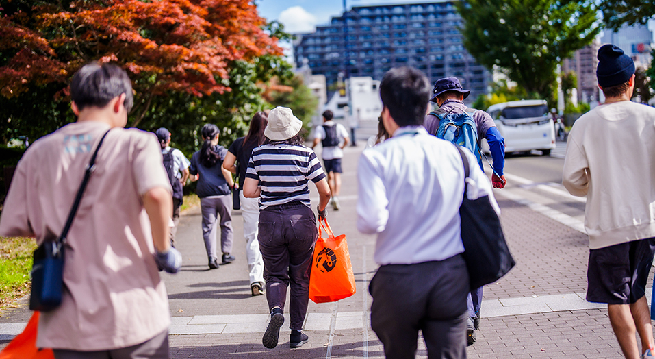 プロギングはジョギングとゴミ拾いを掛け合わせたフィットネス。観光と掛け合わせることで市⺠との交流の場を作り出し、新たな地域の魅⼒発⾒に繋げる。