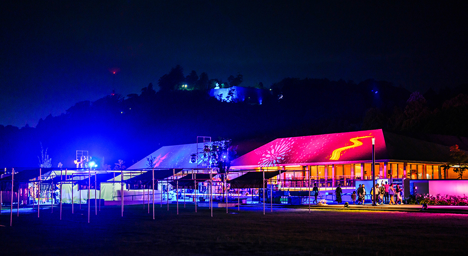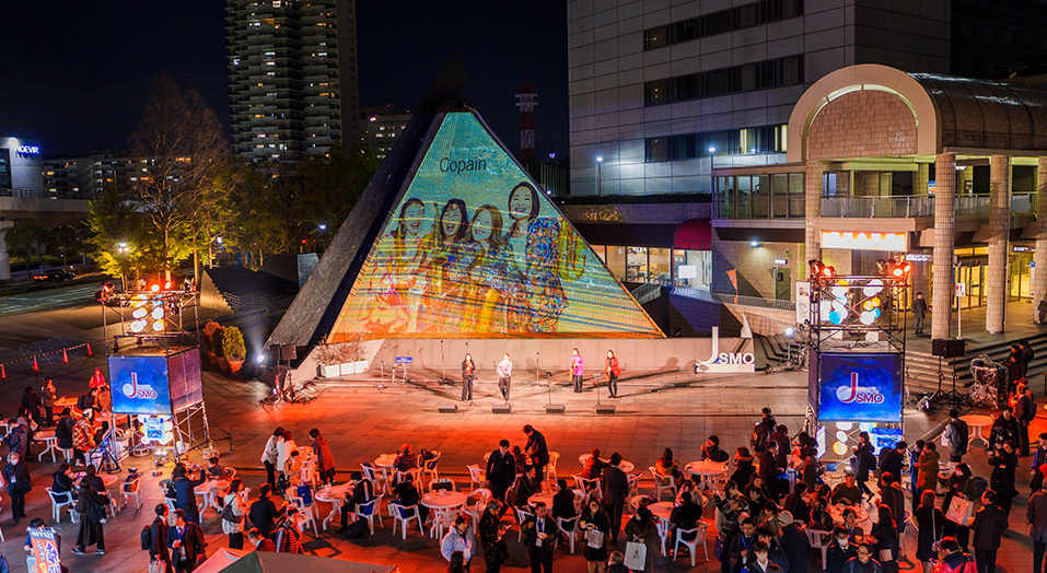 神戸は日本のジャズ発祥の地。その歴史は100年前に遡る。当日は六甲山の美しい星空や港町神戸をイメージさせるライトアップやプロジェクションマッピングでジャズ演奏を彩り、特別な屋外空間を作り出した。