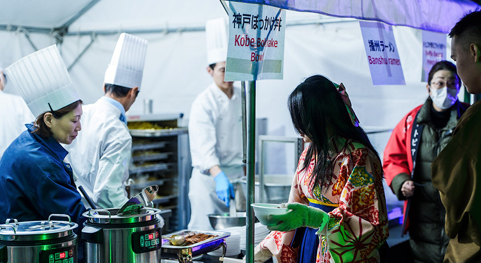 開催地神戸ならではの味覚を堪能できるキッチンカーを揃え、神戸の食文化を楽しむことができるホスピタリティラウンジを設置。神戸名物のそば飯、神戸牛コロッケ、ぼっかけ丼など、多彩なメニューを提供。