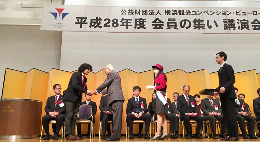 Yokohama City held the award ceremony for the 2016 Yokohama Tourism and Convention Awards of Excellence was held on November 16th at the Shin Yokohama Prince Hotel (Yokohama City, Kohoku Ward), and Tatsuya Ueda, one of our team, was proud to be a recipient.