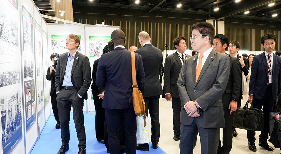 An International Health Expo was held and participated in by 23 companies, international organizations, various groups, and Nagasaki University. On Saturday, May 13, Health Minister Katsunobu Kato and his international counterparts took an evening tour of the booths.