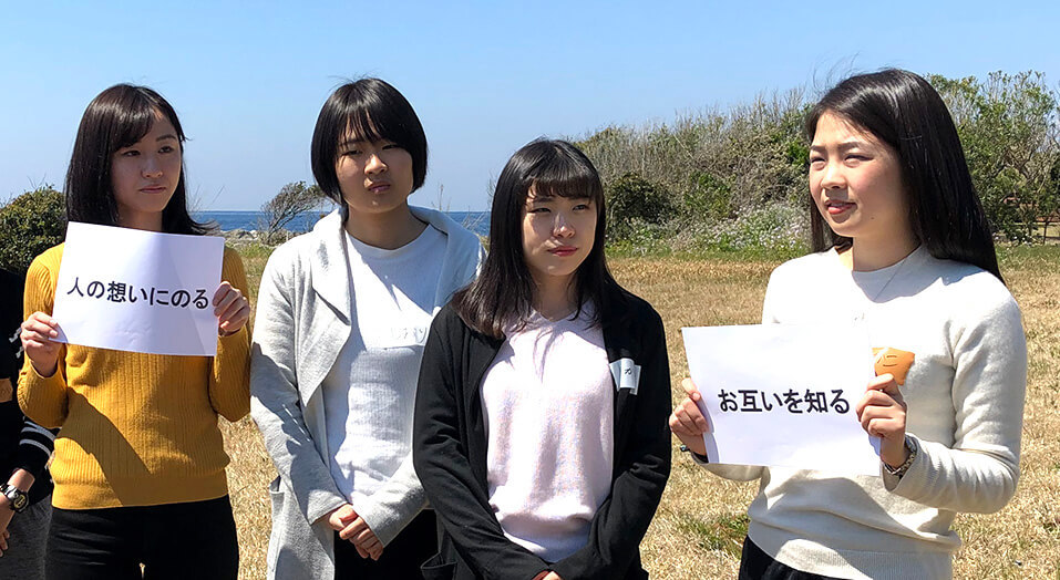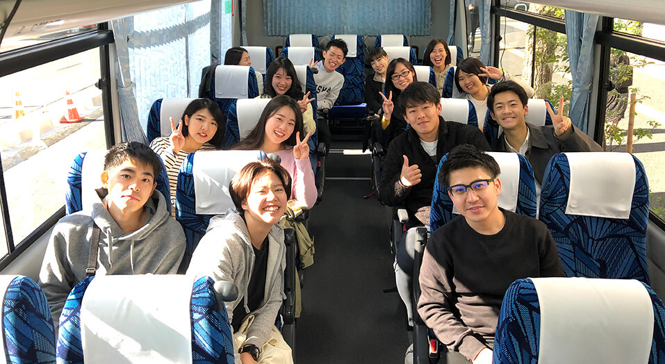 Following the training in Nagoya, the new employees traveled to Tateyama-shi, Chiba, for a two-day, on-site training module. The training program entered a crucial stage. Although they must have felt tired because of the tight schedule, they were excited with the onboard entertainment they prepared on their own and became friendly with each other on the bus to the training site.