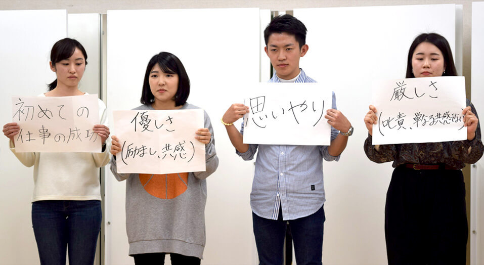 The participants woke up at 7:00 a.m. of the second day of the training in Tateyama. After breakfast, they were asked the following question: “What are the advantages of teamwork and what is the importance of achieving something for your company?” They had to prepare and perform an impromptu play within a short time to answer the question. Hence, the training program was a bit challenging for them. The existence of differences in opinions within a team is natural. They were required to respect the ideas of the other members of the group even as they expressed their own opinions. Through this role-play exercise, they intensified their understanding of each other’s characteristics and positive aspects, and then articulated what their conceptions of achievements for JCS through their group performances of the skits they had prepared.
