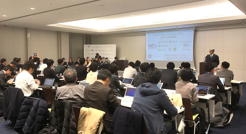 A press conference was held to announce the Event Horizon Telescope results at the Kioi Conference in the Tokyo Garden Terrace Kioicho, managed and operated by JCS, on Wednesday, April 10, 2019. Scientists successfully obtained the first-ever images to prove the existence of a huge black hole and its shadow, and they announced the achievement in six cities worldwide at the same time. Reporters both roared and took pictures.