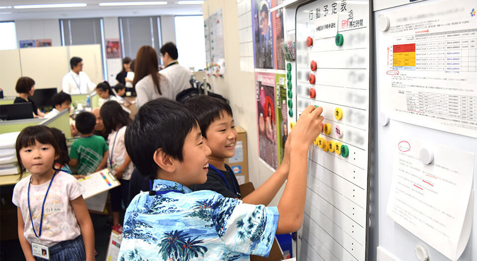 At the “Family Visit Day” held on Wednesday, July 24, employees’ family members, including their children, visited JCS. Children saw their fathers and mothers work at the office, which was something unusual for them, and spontaneously participated in many programs.