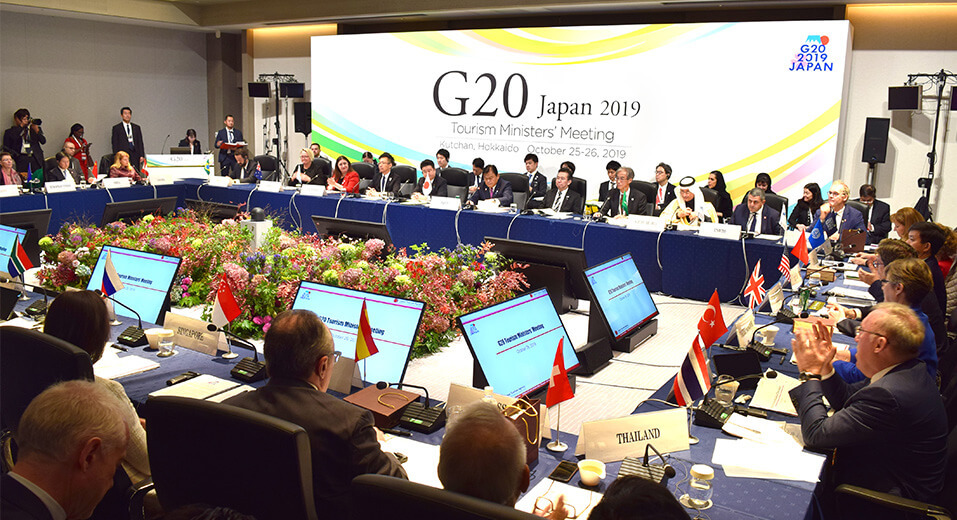 The 2019 G20 Tourism Ministers’ Meeting was held on Friday, October 25 and Saturday, October 26 at the Niseko HANAZONO Resort in Kutchan Town, Hokkaido, Japan. This was a large-scale international meeting with a total of attendees from 31 countries, including G20 members and delegations from various international organizations, leading to opinions being actively exchanged between countries. Global issues in the tourism field, considering the trend of tourism policies in each country and the global tourism market, were discussed, and JCS was proud to be in charge of the overall management, including the Ministers’ Meeting.