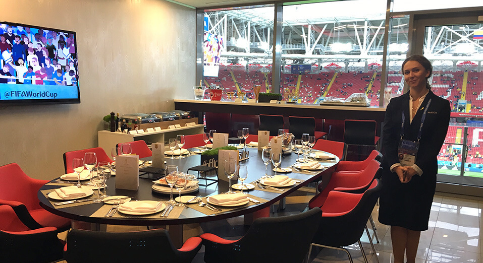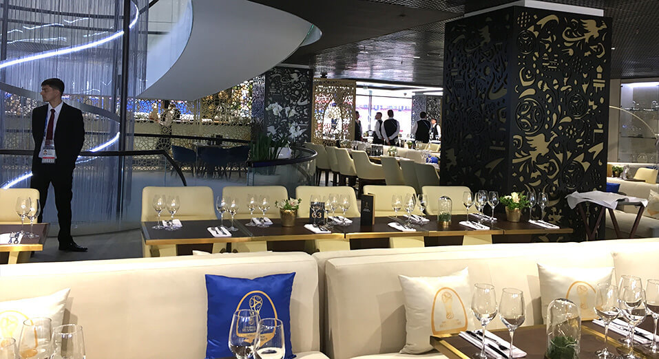 The Official Hospitality Programme has several products. At the most upscale TSARSKY Lounge, you can enjoy gourmet dishes are freshly prepared at chefs stations at the lounge with an excellent view of the pitch. At MATCH Private Suite you can watch matches at stadium seating located directly in front of your private room. Even MATCH CLUB, the most reasonable hospitality package, costs about 4 times as the normal CAT 1 ticket, but this time in Russia, approximately 14,166 (people out of 80,000 witnessed the final with hospitality packages).