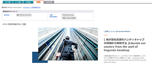 WEBコンテンツは、サイトのURLを入力するだけで自動翻訳が行われ、レイアウトはそのままに翻訳結果が表示されます。さらに画面上に現れるリンクをクリックすれば、次のページが翻訳されます。