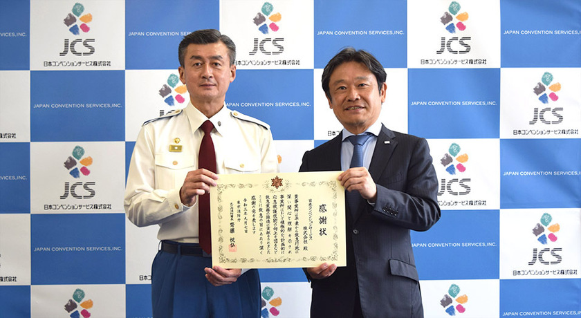JCSは、救急救命に対する社員教育と普及活動のこれまでの取り組みが認められ、9月7日(火)に丸の内消防署から感謝状を受領しました。