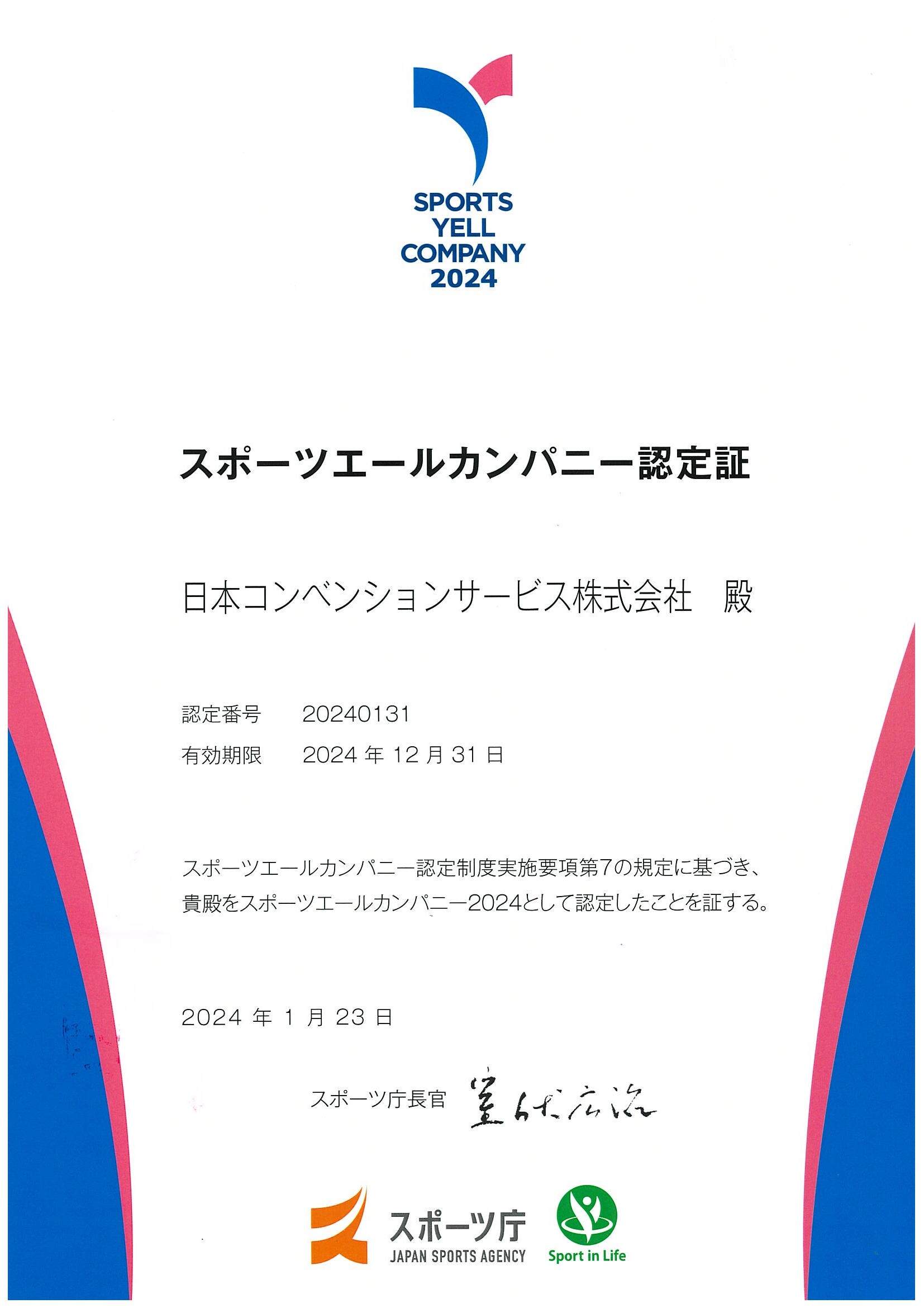 JCSは、「スポーツエールカンパニー2024」に昨年に引き続き2年連続で認定されました。