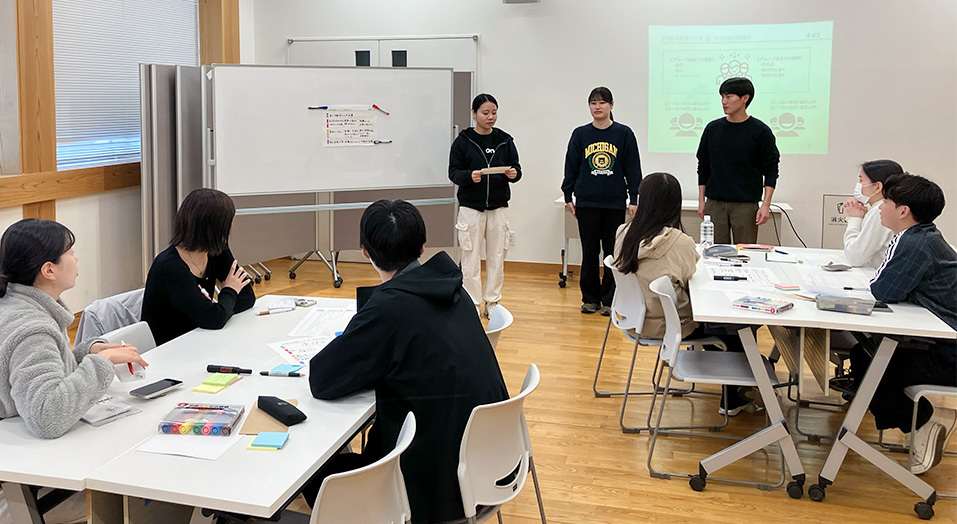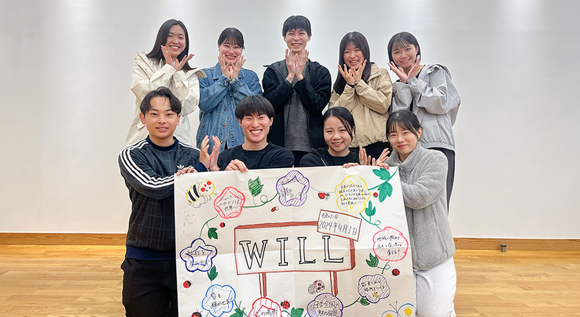2日目は、グループワークを通して社会人基礎力を構成する思考力や発信力、課題発見力を磨きました。2日間を通して9名のチーム名を考え、それぞれの想いをまとめた1枚の「旗」を作成し、研修を終えました。