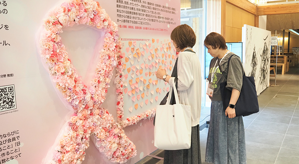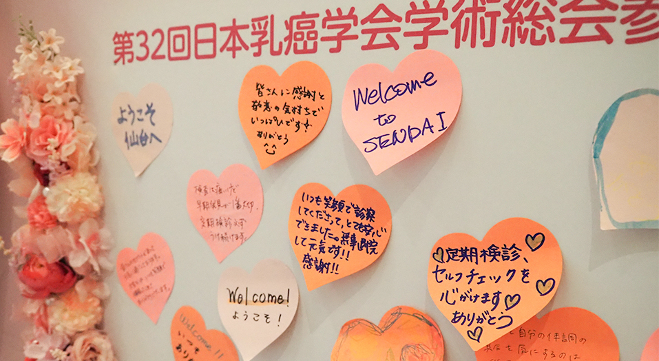 市民ボランティアが制作したピンクリボンをモチーフにしたフラワーアート作品展示と、市民や患者さんから医療従事者へ、普段は伝えられない感謝の気持ちや、仙台来訪の歓迎メッセージを届ける「おもてなしメッセージ」展を実施。メッセージボートは「皆さんに感謝と敬意の気持ちでいっぱいです」、「大変な中、いつも笑顔で頑張ってくれてありがとうございます」「ようこそ仙台へ!」など多くのメッセージで埋め尽くされました。