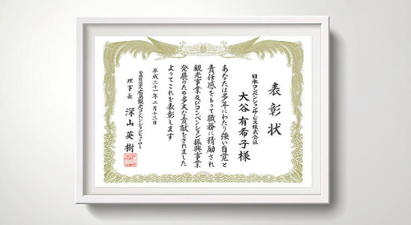 2019年2月13日にリーガロイヤルホテル広島で「平成30年度広島観光コンベンションビューロー優良従業員表彰式」が行われ、当社関西支社の大谷有希子社員が受賞しました。