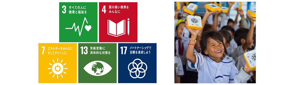 世界で電気を使えない生活を余儀なくされている人口は14億人と言われる中、環境問題、健康被害、発展の妨げなど様々な弊害を招き、貧しさに拍車をかける原因となっています。SolarBuddyは、エネルギー貧困と再生可能エネルギーについて学びながらチームでソーラーライトを組み立て、完成品は、SolarBuddyが責任を持ってライトを必要とする指定の国の地域へ届けています。SolarBuddyはSDGs目標7をはじめとして、全部で5つの目標の達成に貢献しています。