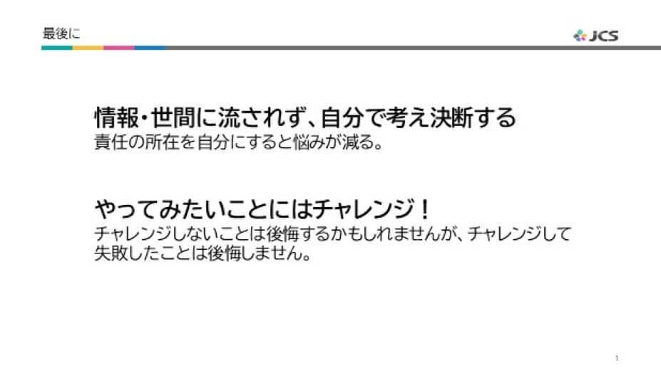 江藤は講義の最後に、「情報・世間に流されず、自分で考え決断すること」、そして「やってみたいことにはチャレンジ!」と激励のメッセージを送りました。