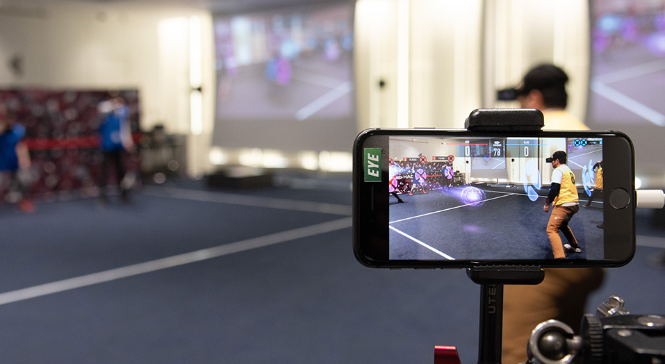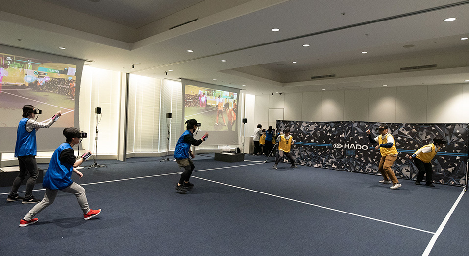 今回のメインコンテンツとして、AR( Augmented Reality:拡張現実)技術を用いたバーチャル上で行われるドッジボールのようなスポーツ「HADO」を実施しました。