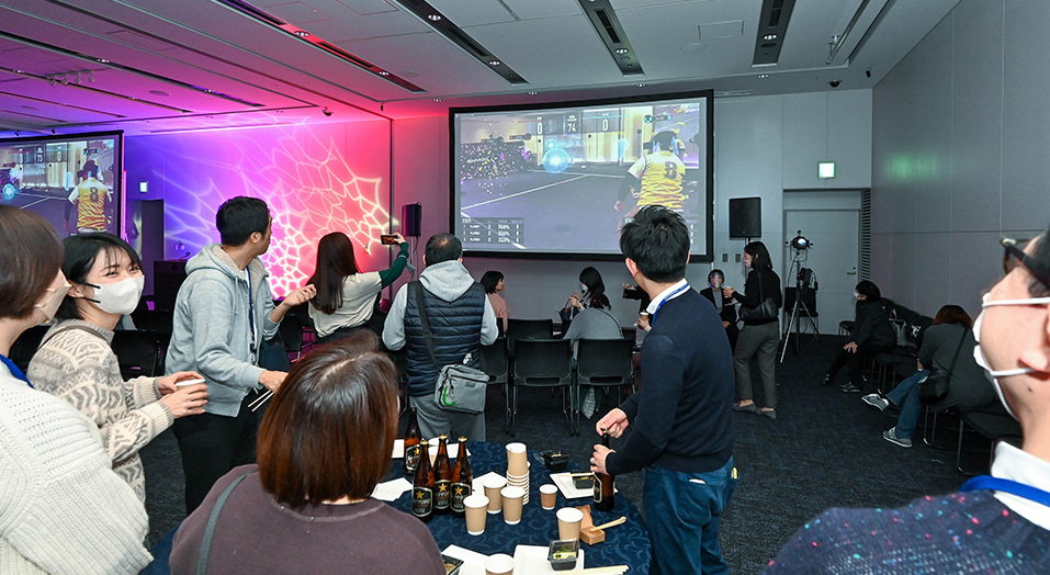 社員はそれぞれ「選手」、「応援・視聴者」、「実況・解説者」という立場で、部門対抗トーナメント戦というエンターテイメント性を絡めながら、最新テクノロジーを体験し、スポーツを通じたコミュニケーションを深めました。