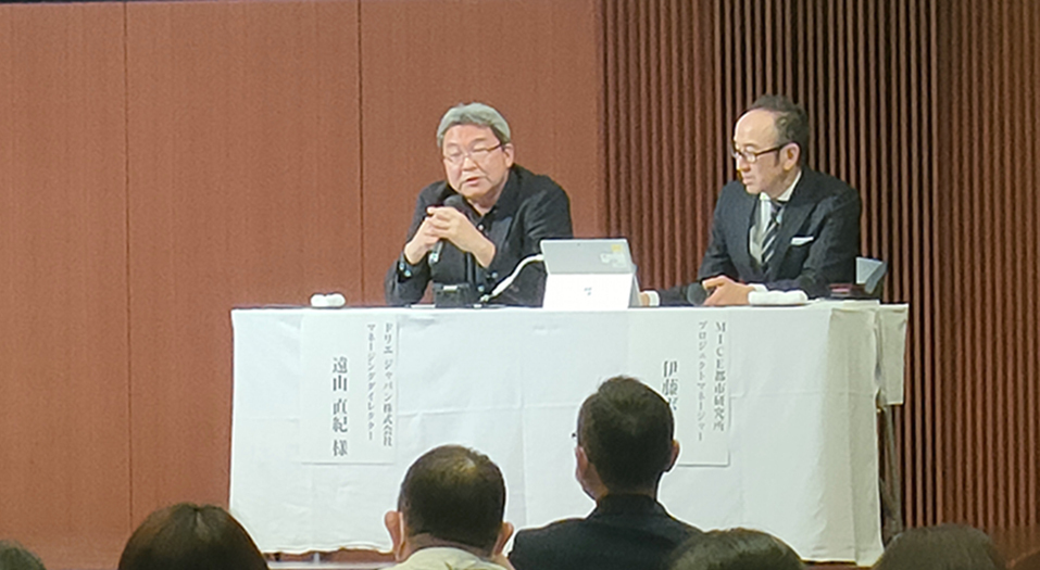 第2部では「MICEにおけるデジタルトレンド」について、伊藤とDorier Japan, Managing Director 兼JCSコミュニケーションズシニアマネージャーである遠山が登壇。国内外のMICEにおけるデジタルトレンドの事例のほか、ポストコロナのMICEにおけるデジタルテクノロジーの動向、MICEの開催形態の変化の予想などについて専門的見地から解説しました。