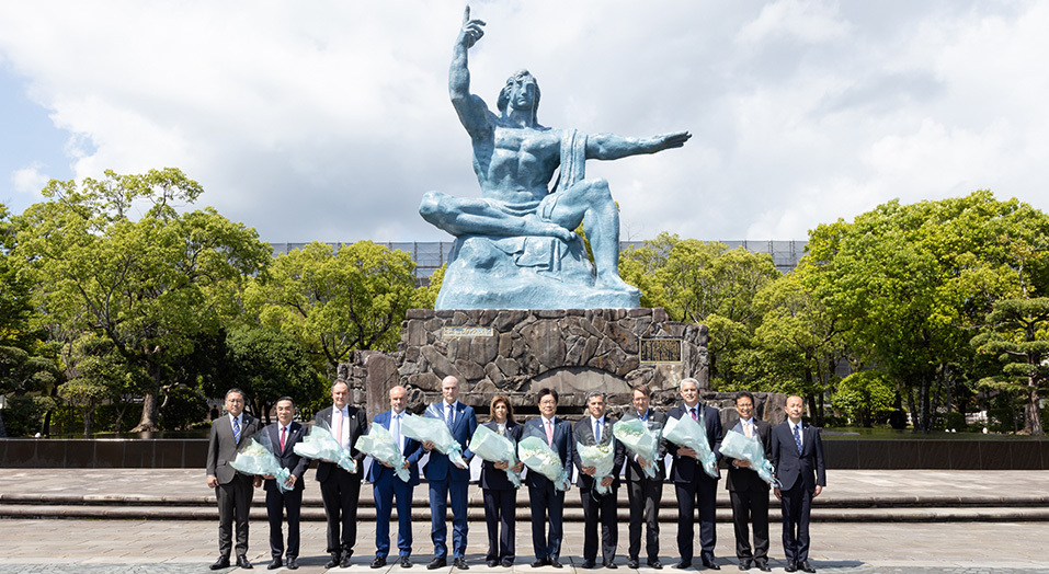 最終日には、各国大臣らは同市にある平和公園を訪問。歴史上初めて、G7の閣僚がそろって平和祈念像の前で献花し、黙祷を捧げました。