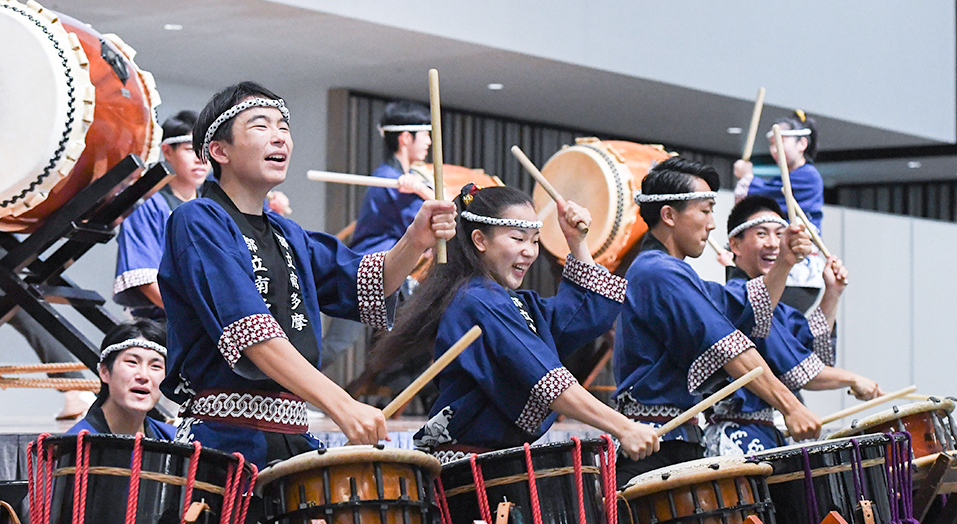八王子市にある創価大学の学生漫才コンビ、南多摩中等教育学校の太鼓部による演奏、ギネス記録樹立した世界初のプロけん玉師や、ジャグリング全国大会優勝者の演技などを繰り広げ、会場を盛り上げました。