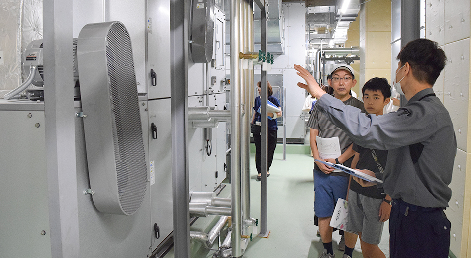 施設の成り立ちや特徴、昨年10月の開業からこれまでの開催イベントなどの説明の後、普段は見ることができないバックヤードツアーに出発。