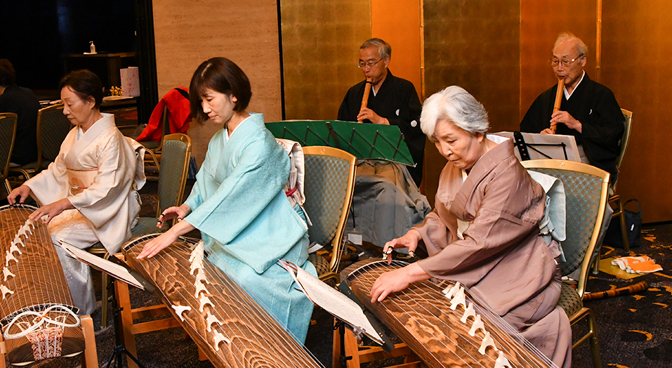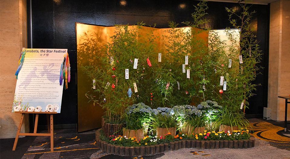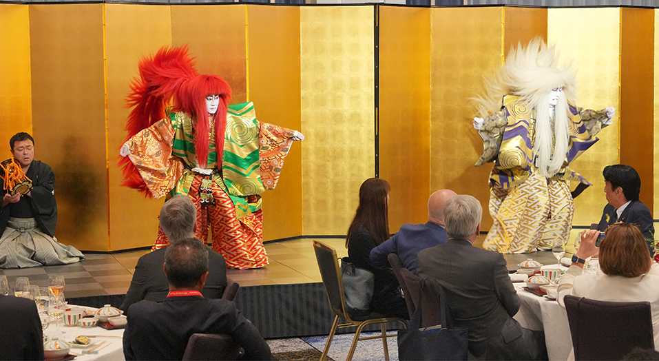 会場では、七夕にちなんだ笹飾りの装飾や、参加者の入退場に合わせて琴・尺八演奏が行われました。また、フォーラム最終日の夕食会では歌舞伎が披露されるなど、さまざまなイベントを通じて日本文化を世界に向けて発信しました。