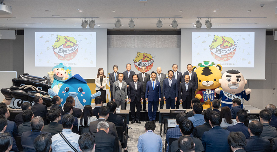 設立総会には、福岡市長 高島 宗一郎氏をはじめとした各自治体の首長や広域連携DMOの代表者など、約20名が登壇。アライアンス設立を記念して開催されたカンファレンスでは、各自治体におけるインバウンドの状況やエリアを超えた西のゴールデンルートの意義などが議論され、トークセッションの後にはご当地のゆるキャラも登場しました。