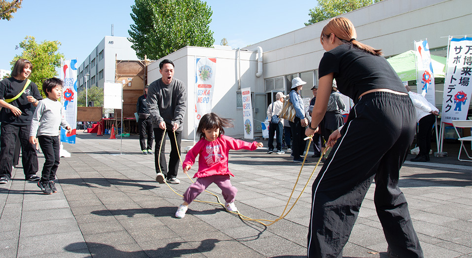 大阪公立大学では、キャンパスの雰囲気に溶け込みやすいストリートスポーツとして、ダブルダッチを取り入れ、大学生を中心に地域住民の方々も気軽に参加できるよう、パフォーマンスショーと体験会を実施しました。