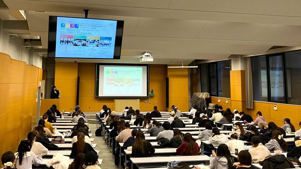 当社通訳手配管理部の御木が、大妻女子大学の講義「キャリアデザインⅡ・Ⅲ」に、2025年12月1日(月)、ゲストスピーカーとして登壇しました。本講義は、学生の皆さんが、将来の働き方や自身の価値観を整理し、主体的なキャリア選択につなげることを目的として実施されています。