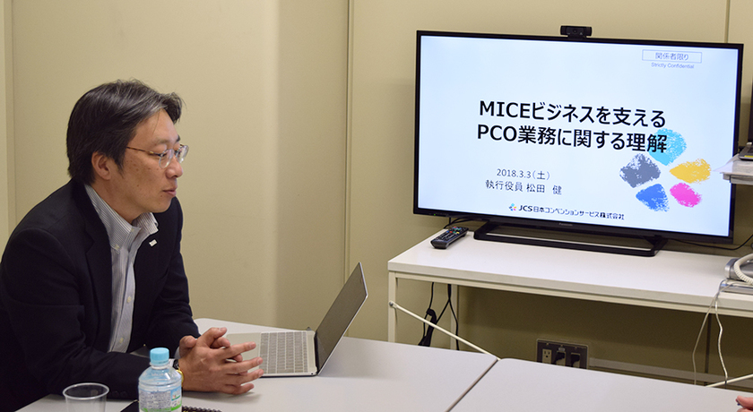 3月3日(土)、当社執行役員の松田健が「MICEビジネスを支えるPCOに関する理解」というテーマで講義を行いました。