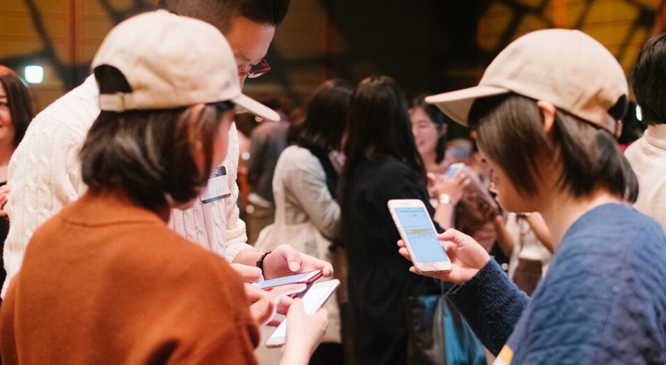 今回の社員総会に向けて特別にカスタマイズしていただいたスマホ用アプリ「Buddyup!」(株式会社富士通研究所様が研究開発中)が、盛り上がりをブーストさせる役割に貢献しました。事前に「顔写真」と「プロフィール」を登録し、会場で2~3問のアンケートを実施することで、AIのアルゴリズムが独自に社員をグルーピング。初めて顔を合わせる社員同士でも相手の情報が手元(スマホ)でわかりますので、会話のきっかけをアシストしました。