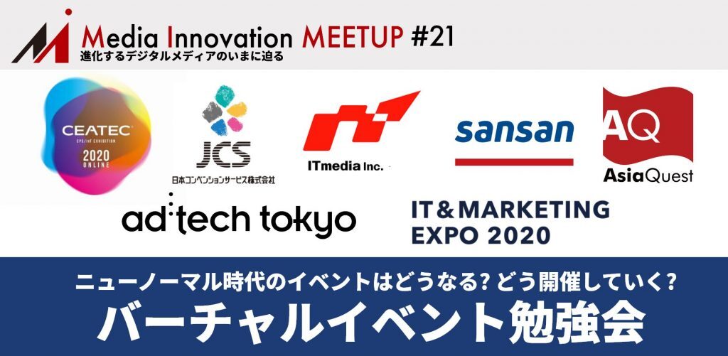 株式会社イードが主催する「Media Innovation Meetup #21 バーチャルイベント勉強会」が、11月27日(金)オンラインで無料開催されます。新型コロナウイルスの影響を受け、リアルなイベントに変わって登場した“バーチャルイベント”を実践している先駆者として、今回、同社から登壇オファーを頂きました。「ニューノーマル時代のイベントはどうなる?どう開催していく?」をテーマに、計7社によるプレゼンテーションとパネルディスカッションが行われますので、ぜひご注目ください。