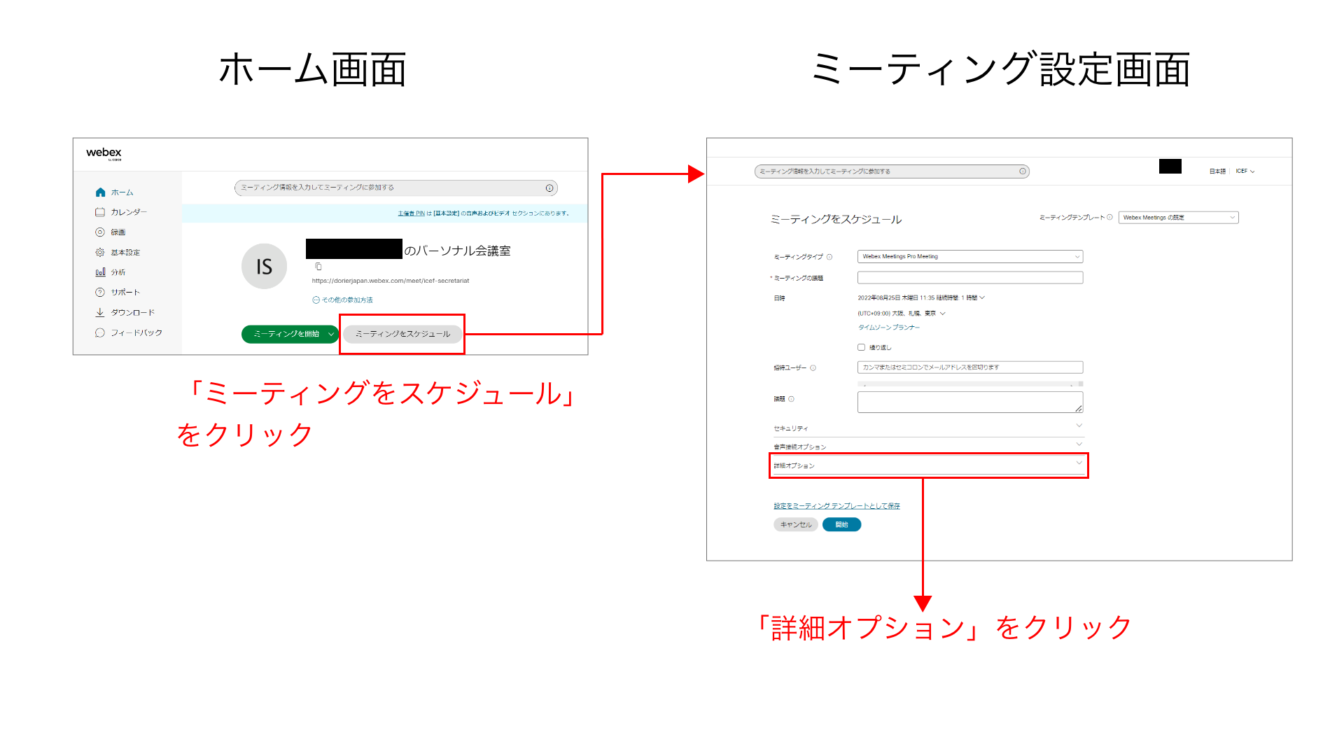 - Webexにサインインして、「ミーティングをスケジュール」をクリック