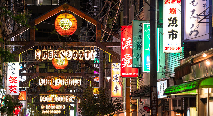 本稿ではMICEレガシーの創出事例として、横浜の庶民の台所として老若男女に親しまれている「野毛」で行われるフード&BARホッピングツアーを取り上げます。フード&BARホッピングツアーは、約600店舗のユニークな居酒屋が軒を連ねる野毛横丁で、日本ならではの食事とお酒を堪能することができるローカルガイド付きツアーです。