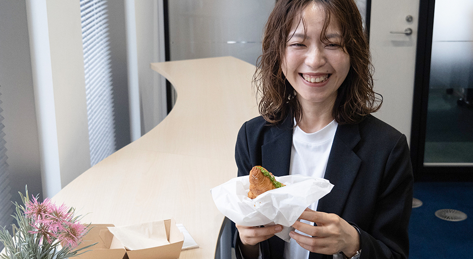A.L. 前職で不動産系の仕事をしていた時からの習慣で、出社時にご飯を買って、自分のデスクなど社内で済ませることが多いです。ほかの社員は外に食べに行ったり、お弁当を持ってきていたりと、和気あいあいとした雰囲気でお昼の休憩時間を過ごしています。