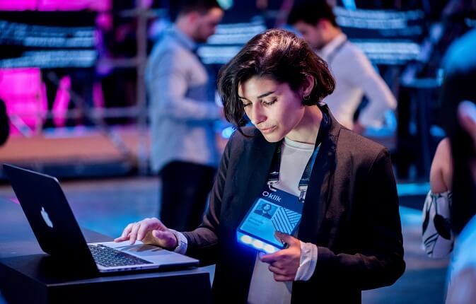 参考事例として、カナダの企業「Klik」が提供している、“ウェアラブル・スマートネームバッジ”をご紹介します。以下プロダクト情報は、主催者だけでなく、イベント関係者全員に「有益なソリューション」を提供することができます。