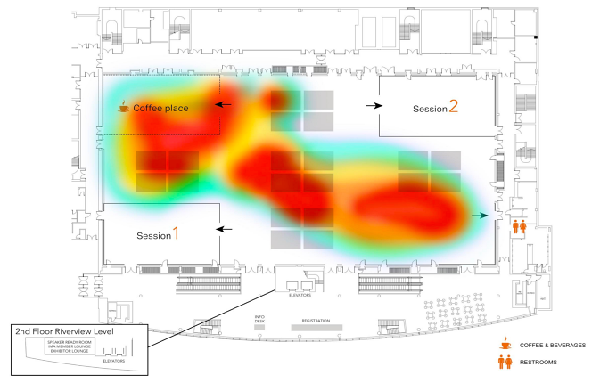 これまで何度もお伝えした「データが入手できる」という特性が最大のメリットです。参加者が今どこに集まっていて、スタッフがどこに配置されていて、何人が受付完了しているか?といった情報が取得できますので、データを根拠に「イベント運営におけるリスクマネジメント」の強化も図ることができます。視覚的にイベント会場が解析できる「ヒートマップ機能」を合わせて活用することで、より精度の高いソリューションが提供できるでしょう。