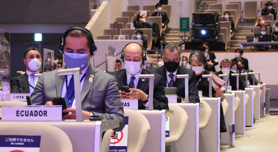 コロナ禍においては国内初の大規模国際会議となり、閣僚級の代表団や国連職員を含む、152カ国、約5,600人が参加しました。本会は現地とオンラインを組み合わせたハイブリッドの形式で実施し、JCSは会場設営、運営、同時通訳、送迎輸送、サイドイベント、展示など業務全般を担当しました。