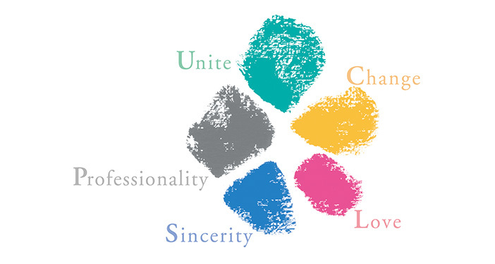 JCSには結束、変化、愛情、誠実、裏⽅という5つの⾏動理念があり、⽇々これらを意識しながら仕事をしています。