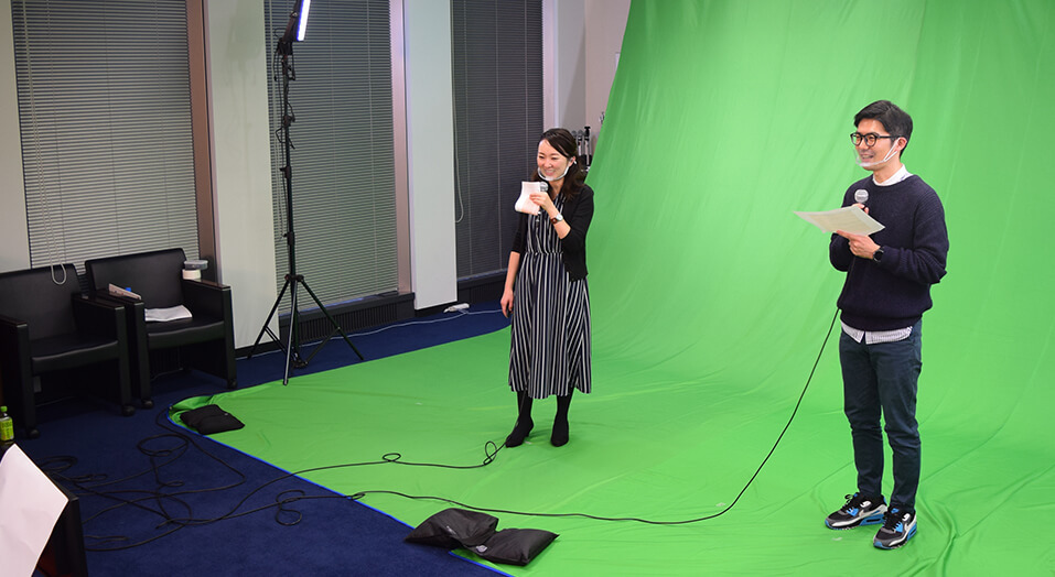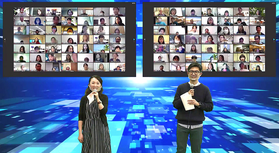 コロナ禍の社員総会は、オンライン形式で実施。社内の会議室や打ち合わせスペースに「配信スタジオ」を設営し、オンラインイベント対応の映像機器やカメラ機材を手配してライブ映像を配信。社員の結束力を高めました。