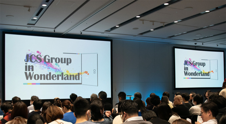 テーマは「JCS Group in Wonderland」。JCSを「人々が驚きや感動を生み出す場所」と見立て、オープニングではWonderlandへの招待状が届く、魅力あふれる空間を演出。開催前からチームで「課題」をクリアして交流を深め、当日はあちこちに仕掛けられたヒントを頼りに謎解きに挑戦。拠点や部署の異なる仲間と協力しながら知恵を絞り、JCSの魅力を再発見しました。