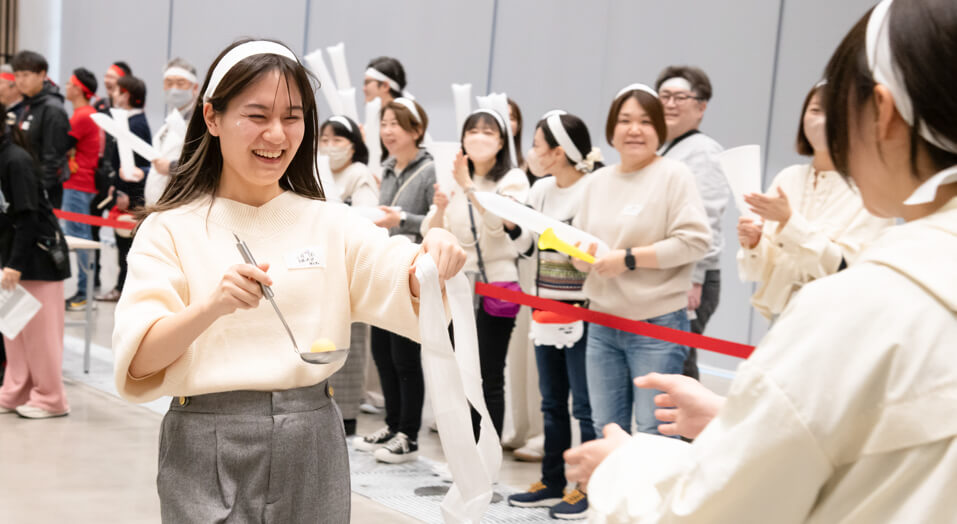 「Jスポ~∞大運動会~」と題して約350人が参加する運動会競技を実施。拠点、部署、性別、世代がバランスよく交流できるよう、全社員がチームに分かれ、連携を深めました。