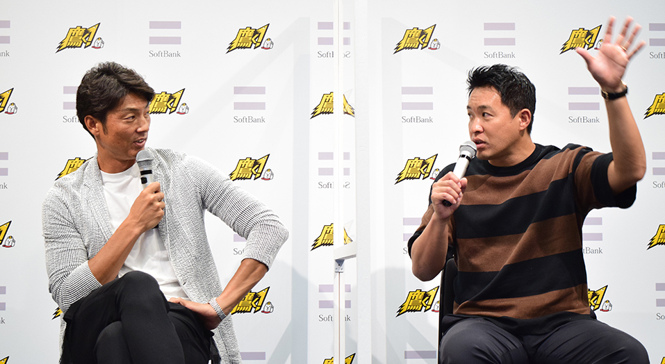 今回のファンミーティングでは、かつてソフトバンクホークスを支えたエースのOB、斉藤和巳さんと、クローザー(抑え投手)の五十嵐亮太さんの2人がトークイベントに出演。野球関連のテーマ「現役時代の思い出」や「自粛期間に熱中したこと」について語り、プライベートな話題を交えて、視聴している参加者のファンと一緒に盛り上がりました。