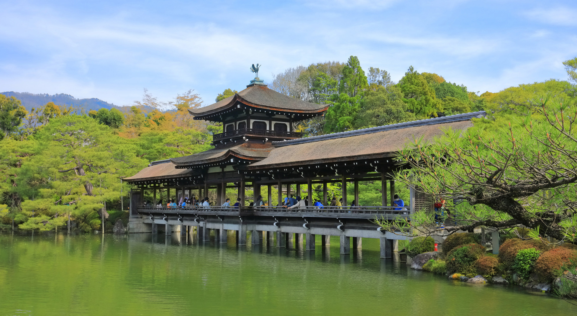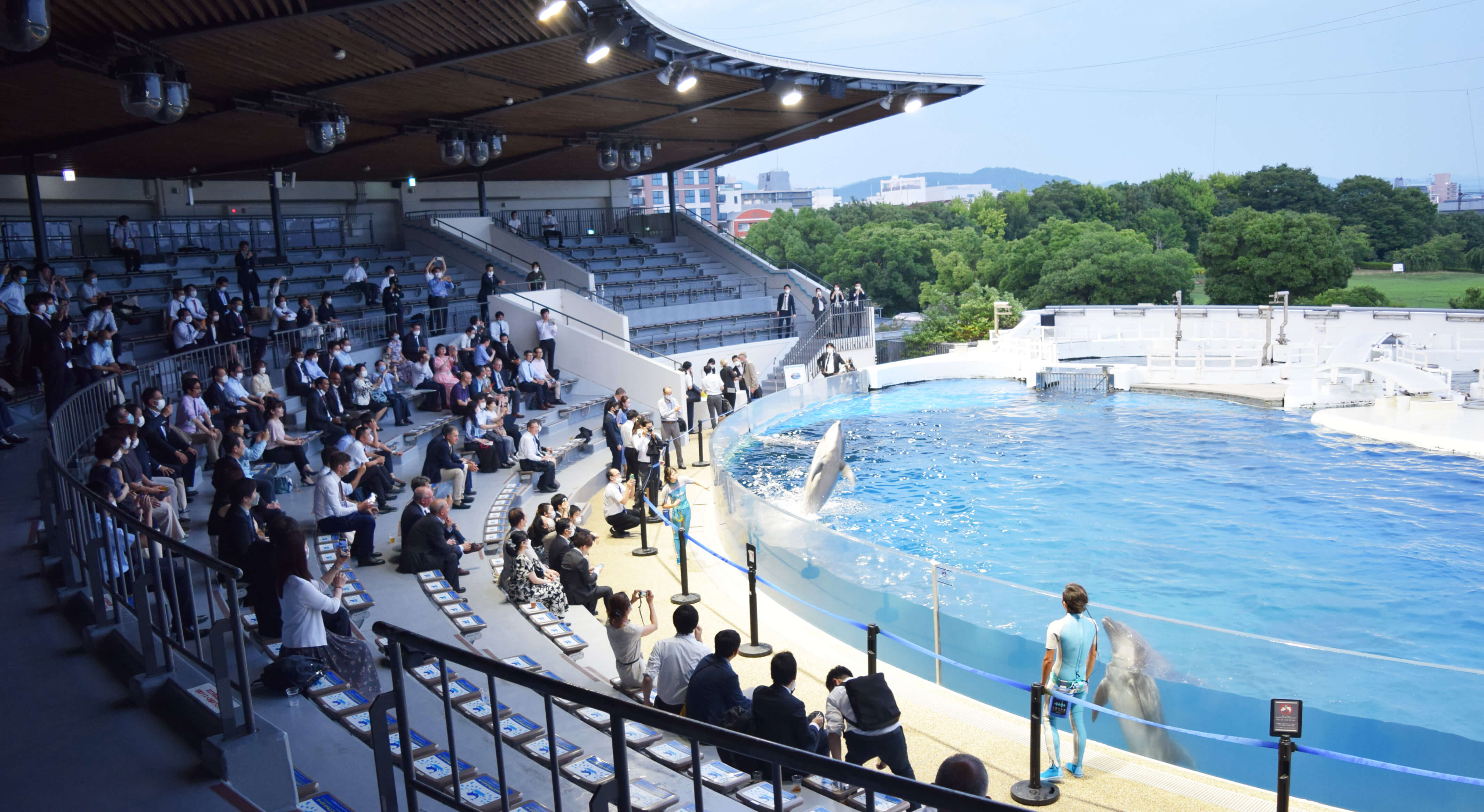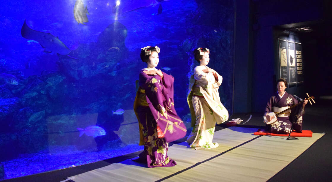 竹山先生と相談して選んだ平安神宮は素晴らしかったです。庭園を散策でき、記念撮影もできたので、参加者には京都らしさを味わってもらえました。また、京都水族館でのイルカショーの観覧も大成功でした。客席に屋根のついた開放感のある屋外スペースで、参加者は全員前を向いているので、感染のリスクを心配することなく、ウェルカムドリンクの提供もできました。屋内展示では芸妓さんにも来ていただいて、普段とは異なる特別感を出すことができました。