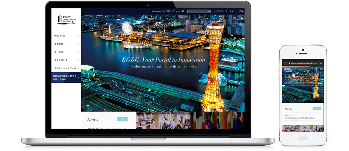 このたび、神戸コンベンションビューロー様の情報発信力強化を目的に、外国人旅行者や滞在者にとって役立つコンテンツを集約し、スマートフォンやタブレット等のマルチデバイスに対応したホームページを構築しました。