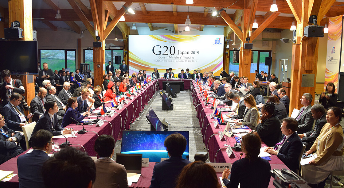 G20観光大臣会合はユニークベニュー(北海道倶知安町 ニセコHANAZONOリゾート)を会場とし、2019年10月25日(金)から26日(土)まで開催されました。ユニークベニューを会場にした閣僚会合は、これまで各国で開催されたG20サミットでも前例がなく、希少価値の高い日本の“ビジネスインバウンド”の事例となります。