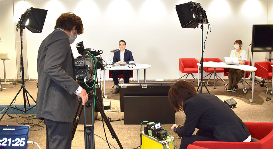 オフィス内の特設スタジオで、