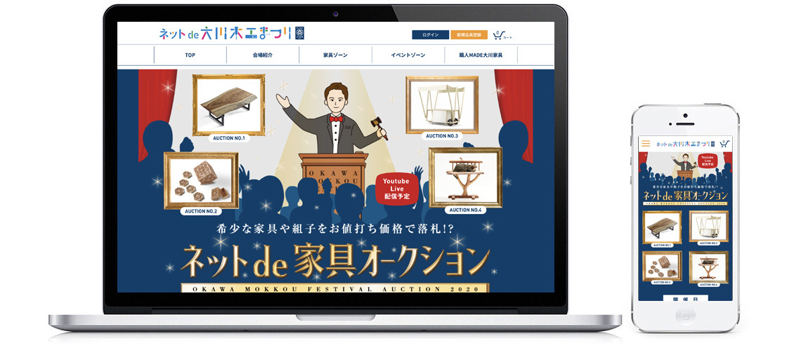 福岡県大川市が主催し、10月10日(土)~18日(日)までの9日間、オンライン上で「ネットde大川木工まつり」が開催されました。大川木工まつりは「家具の生産量日本一」を誇り、毎年20万人が訪れる大川市恒例のビッグイベントです。しかし今回は、昨今の社会情勢を背景に“オンライン開催”を決断する運びとなりました。すべてのイベント企画が新しい環境下で取り組まれる中、最終日には「ネットde家具オークション」が開催され、大川の匠たちが「ここでしか出会えない4品目」を創作・出品されました。